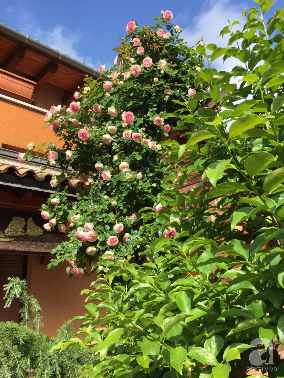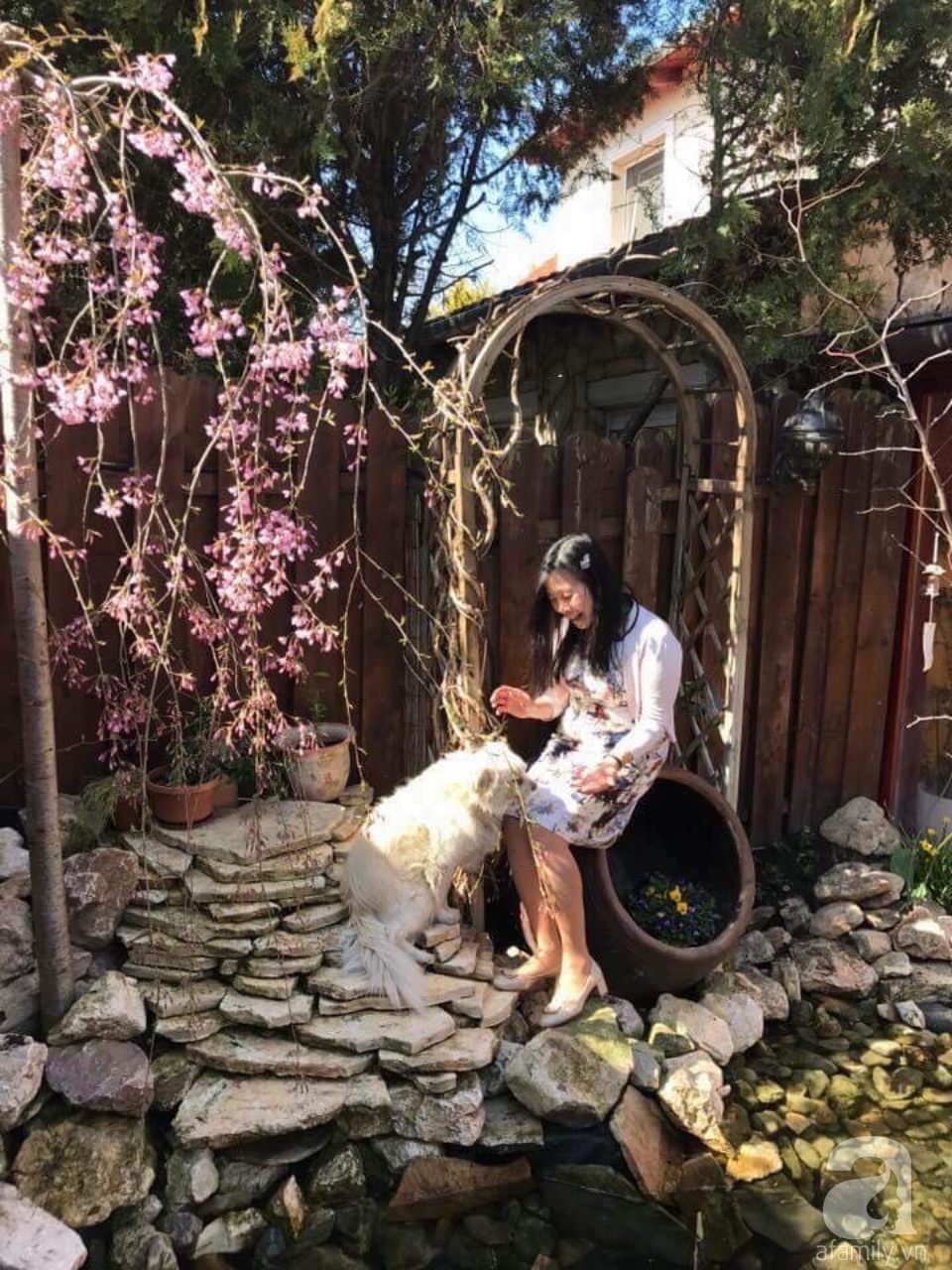 Vườn nhà của chị được chăm chút từng ngày, tận tụy từng phút giây, chị gửi gắm tình yêu đến với từng gốc cây, ngọn cỏ hơn 20 năm. Chị Thảo không chỉ dành tình yêu đặc biệt cho hoa hồng mà xung quanh không gian mà chị sống luôn rộn ràng bởi rất nhiều loại cây và hoa. Ấn tượng nhất khi mùa xuân về trên đất nước mà chị sống, không chỉ có các loài hoa trong vườn mà còn bởi hàng cây anh đào nở hoa nhuộm hồng một góc phố.